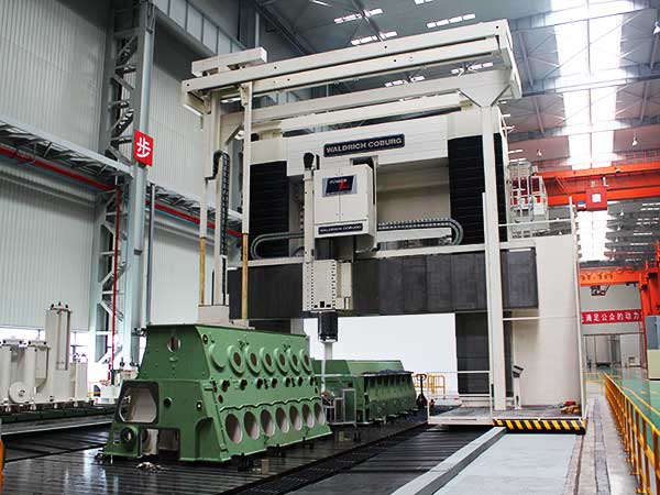 机加工车间建设于2011年,面积1.6万多平方米,投资额达3.6亿人民币。具备年产120万马力的船用低速柴油机机架、机座、气缸体三大件加工能力,同时可承接各种外单位委托加工业务。