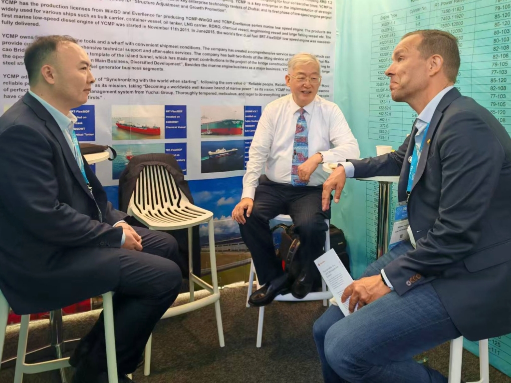 此次参展,公司主要推广三款新燃料产品:LNG双燃料机、甲醇双燃料机和氨双燃料机,以满足海事行业日益增长的可持续发展需求。在DONS?海事展期间,邓辉总经理带领团队与客户进行了深入且富有成效的面对面交流。让客户直观感受到凯发k8天生赢家一触即发船动在三款新燃料产品的技术积淀和对前沿探索的坚持。在交流过程中,客户们对新燃料的技术细节、成本效益、市场推广以及法规适应性等方面提出了诸多宝贵的问题与建议。通过与客户的互动交流,公司也进一步了解到海事行业在可持续发展道路上所面临的挑战与需求,这种深度的沟通不仅加深了客户对公司产品的信任与认可,更为未来的合作奠定了坚实基础。